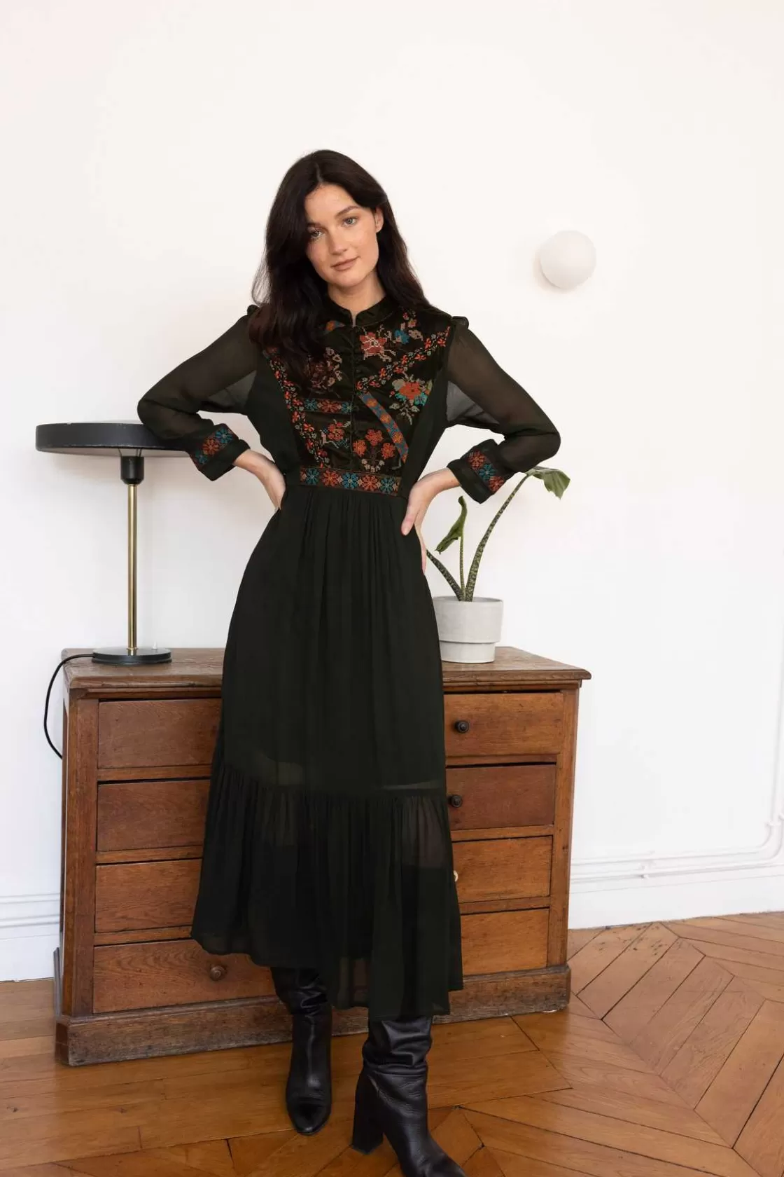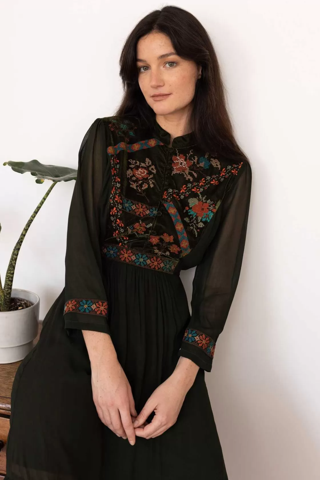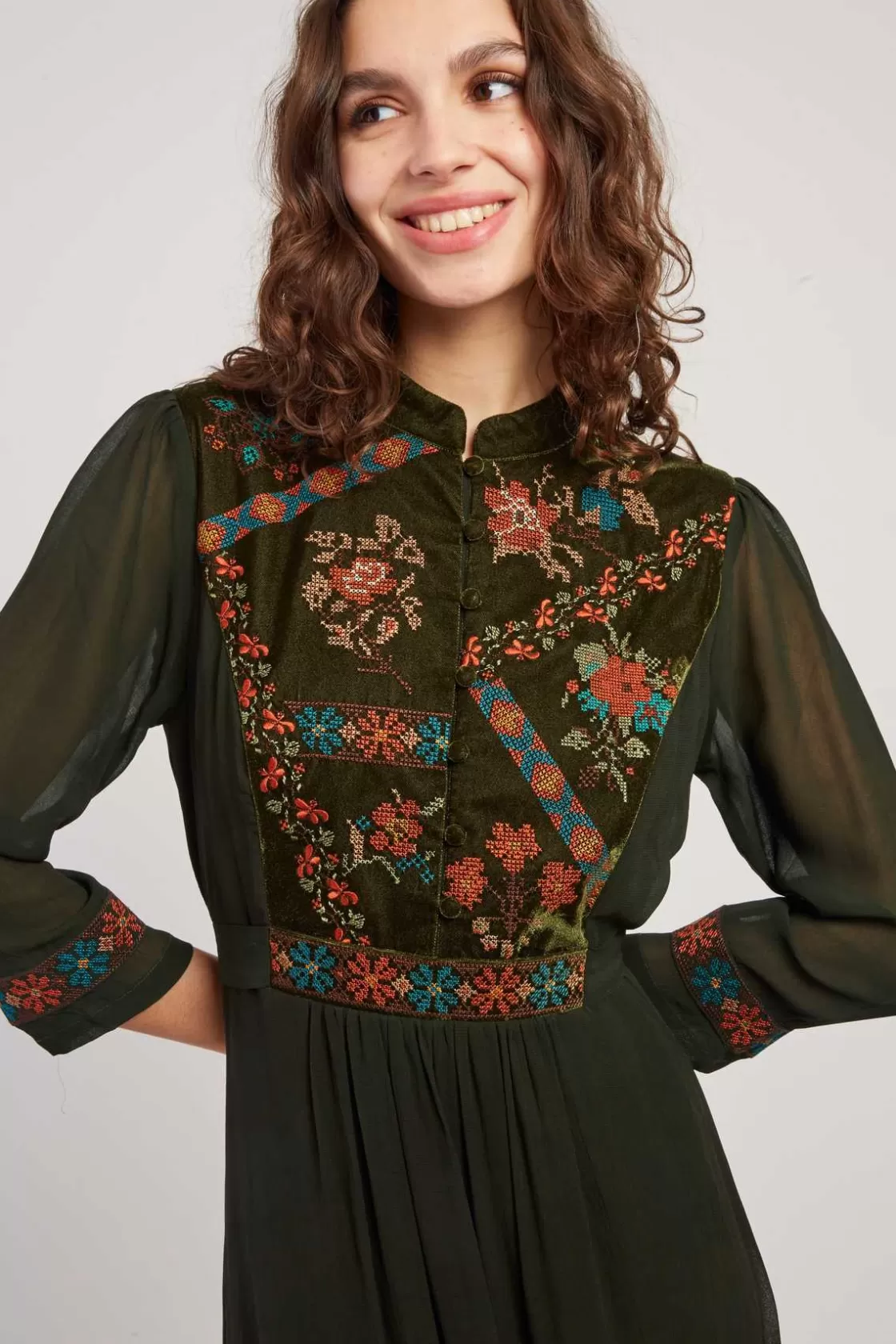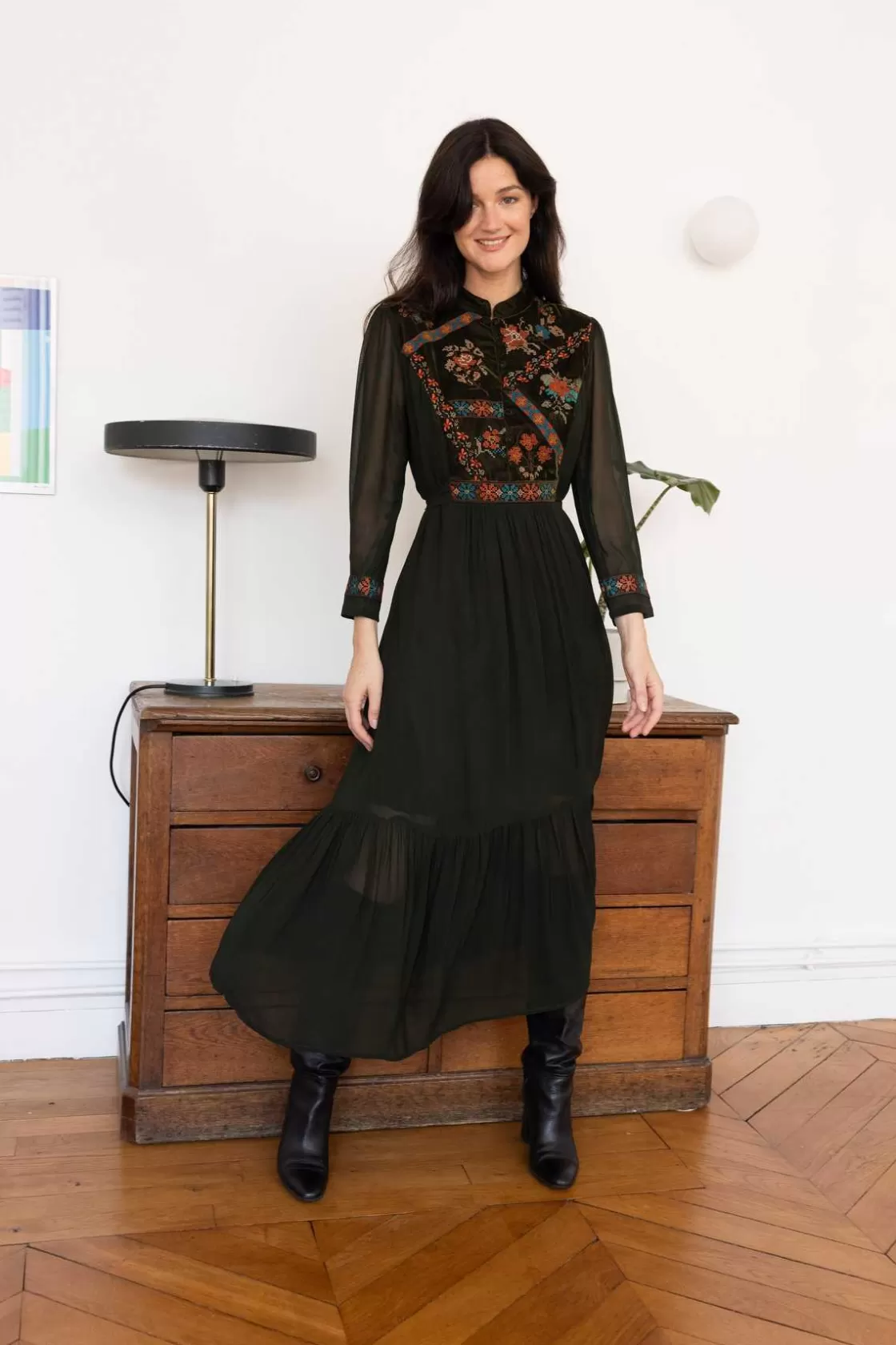 Maison Derhy Les Blouses, Chemisiers & Tops-Blouse brodée avec détails en velours HAITI
